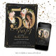 50.º Aniversário, Foto Personalizada de Boho Floral. Convite de aniversário brilhante e bonito com design floral vintage com letras douradas e fundo preto! É incrível com um tema floral e glamouroso. Quer mais personalização? Entre em contato com o designer clicando no botão 'message' abaixo.