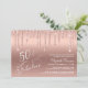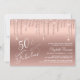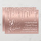 Elegante e chic 50th convite de aniversário com "50 & Fabuloso" gravado em um script branco na moda contra fundo ouro rosa, com brilho de falso ouro rosa caindo. Você pode personalizar com o nome dela e os detalhes da festa.