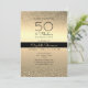 Luxo, brilho, elegante brilho preto e dourado 50 e fabuloso convite de 50 anos com espirais florais únicas e sofisticadas.