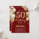 Convites 50º Aniversário Vermelho Escuro e Balões Dourados
