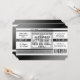 Um convite exclusivo para ingressos, como uma admissão ao cinema ou ao cinema. O convite para o estilo de tíquete do canto 50º em forma de gráfico preto e branco é personalizável para o seu evento ou ocasião. Use-o para uma festa de aniversário 50ª ou qualquer evento. Fundo preto com divisões e seções brancas, com um texto de estilo de impressão do computador.