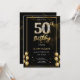 50º Convite de Aniversário Dourado e Preto Diamante,