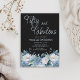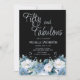 Azul poeirento e floral branco preto "Cinquenta e Fabuloso" 50º convite de aniversário. Entre em contato comigo para obter assistência com a personalização ou para solicitar correspondência ou coordenar produtos Zazzle