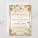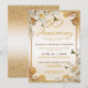 Convites 50º Quadro de Glitter Dourado Floral Aniversário d