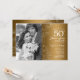 Convite de Aniversário de 50 anos Com Foto - Floral Branco Dourado. Design moderno com desenhos de esboço botânico e fonte de letra script. Cartão de convite simples e moderno perfeito para uma celebração de aniversário de casamento dourado e sofisticado. Pode ser personalizado para refletir qualquer ano de casamento. Convites impressos da Zazzle ou modelo digital para impressão instantânea.