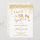 50º Convite de Aniversário. Saúde Para 50 Anos! Design elegante em branco e ouro. Apresenta óculos de champanhe, fonte de script e confetti. Perfeito para na moda 50 festas de aniversário. Personalize com seus próprios detalhes. Pode ser personalizado para mostrar qualquer idade.