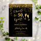 50º Convite de Aniversário. Saúde Para 50 Anos! Design elegante em preto e ouro. Apresenta óculos de champanhe, fonte de script e confetti. Perfeito para na moda 50 festas de aniversário. Personalize com seus próprios detalhes. Pode ser personalizado para mostrar qualquer idade.