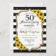 Ouro 50º Convite de Aniversário de Casamento. Convite floral com girassóis, listras negras e brancas e ouro falso brilhante. Perfeito para uma elegante comemoração de aniversário. Personalize com seus próprios detalhes.