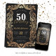 Convites 50.º aniversário Dourado Black Boho Glamorous Vint