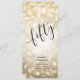 Elegante Glam Dourado Glitter Lights 50th Birthday Script modelo com texto de menu de festa, luzes brilhantes e script de tipografia moderno.