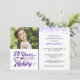 Convide seus convidados com este convite de 50 anos com uma fronteira confetti roxa apresentando um design de tipografia retrô com 50 ANOS NO FAZER com seu ano de nascimento integrado no design. Adicione uma foto atual ou uma foto de seus anos mais jovens para um convite divertido com um olhar do passado. DICA DA FOTO: Para obter resultados mais rápidos/melhores, escolha uma foto com o assunto no meio e/ou pré-plante para uma forma semelhante, conforme mostrado ANTES de carregar, e ela preencherá o espaço de fotos perfeitamente. Entre em contato com o designer se você quiser que este design seja modificado ou outro produto para complementar o conjunto do seu partido ou para criar um presente comemorativo.