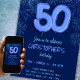 Celebre um aniversário marcante com nosso impressionante convite de aniversário 50º! Esta placa de na moda apresenta tons vibrantes de azul no design, mostrando um balão de folha azul arrojado com o número 50 e fogos de artifício festivos. Perfeito para ele, esse convite capta a essência de fazer 50 anos de forma moderna e colorida. Ideal para qualquer homem ou adulto macho, é a melhor maneira de lançar uma celebração memorável. Dê vida à sua quinquagésima festa de aniversário com este convite único e atraente! Celebre em estilo!