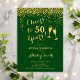50º Convite de Aniversário. Saúde Para 50 Anos! Design elegante em verde e ouro. Apresenta óculos de champanhe, fonte de script e confetti. Perfeito para na moda 50 festas de aniversário. Personalize com seus próprios detalhes. Pode ser personalizado para mostrar qualquer idade.