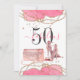 50 e fabuloso brilho cor-de-rosa, ouro, brilha 50º convite de aniversário com calçados dançantes no estilo chic elegante. Personalize com as informações do seu partido no verso do convite.