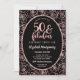 50 E Fabuloso Convite de aniversário Elegante Dourado. Os 50º convites de festas de aniversários das mulheres personalizáveis elegantes em brilho rosa de ouro, padrão rosa em fundo preto.