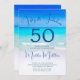 Uma cena de praia sedutora é o fundo deste convite de aniversário do Fabuloso e Cinquenta Praias. Uma imagem está no reverso do convite. O azul oceânico e o céu são as principais cores. Todas as informações e a imagem são facilmente substituídas para seu próprio convite personalizado.