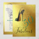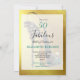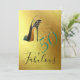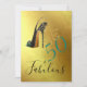 Um 50 divertido e um belo convite para comemoração de aniversário. O design apresenta um calçado elegante e esticado sobre fundo dourado. A idade de 50 anos pode ser alterada para qualquer idade. Suas informações são facilmente alteradas para personalizar seu convite.