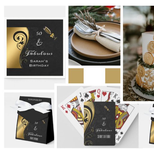 50 e Fabulosos convites de aniversário personalizados e pretos e Dourados