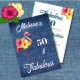Celebre um marco em estilo com este convite de aniversário Fabuloso de 50 flamingos! Apresentando um flamingo, cor-de-rosa-chico, florais tropicais e fundo inspirado em denim na frente, aliado a tipografia elegante no verso, este convite dá o tom para uma celebração elegante e divertida. Perfeito para os aniversários mais marcantes, festas tropicais, encontros à beira da praia, ou qualquer fabulosa 50ª celebração. Personalize facilmente com seus detalhes de eventos para uma manutenção única.