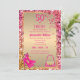 Moderno e elegante, para o convite de aniversário da fashionista de 50 anos. Moldura de confete rosa brilhante em folha metálica dourada de luxo glamouroso feminino, um par de sapatos de salto alto lindos 👠 com laços sentados no canto esquerdo e uma bolsa rosa dourada colorida e fofa 👛 sentada no canto inferior direito, 50 & Fabuloso escrito em rosa brilhante fúcsia em folha metálica dourada e no verso