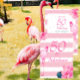 50 e Fabuloso Flamingo e design de flores rosa. Florais e listras cor-de-rosa Um design divertido que pode ser personalizado facilmente para suas informações. No reverso, o design apresenta as listras cor-de-rosa e Flamingo repetido