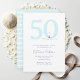 Um elegante e moderno modelo de 50º aniversário para mulheres com um tema náutico, com um impressão de tinta de ondas oceânicas, um pequeno barco e gaivotas voando sobre ele com uma "navegação em 50" design, caligrafia moderna, além de listras nas costas. Uma escolha encantadora para uma praia da 50ª festa de aniversário, uma costa, lago, borda d'água, barco ou festa de aniversário de iate para uma mulher que faz cinquenta anos.