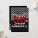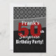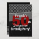 É aqui um convite de aniversário na moda da surpresa com economias de harmonização o cartão da data em preto e branco com acentos do vermelho. Divertimento! Todo o texto é customizável.