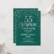 Surpreenda o 55º Aniversário de Casamento Convite Elegante design em verde esmeralda com letra falsa de escrita prateada e confete. Envie-me uma mensagem se precisar de um ano personalizado.
