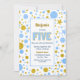 Convites 5 Birthday Blue e Dourado partido Glitter