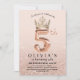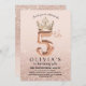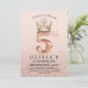 Um convite minimalista de 5 com letra rosa e caligrafia moderna. Coroa elegante com safiras elegantes e pedras de precioso em técnica de aquarela sobre fundo rosa.