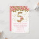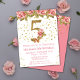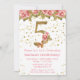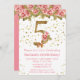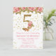 Convite de aniversário Floral 5 de Roses Rosa para uma menina de 5 anos com escrevendo moderno de escrita e brilho dourado.