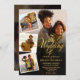 Convites 5 Foto Colagem Dourada Script QR Casamento