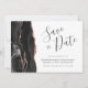 Este elegante e moderno salve a placa de data apresenta uma borda agata preta, aparada com uma falso rosa dourado. O texto personalizável combina o script de escrita manual, as fontes em copperplate e itálico em cinzas de carvão em um fundo branco. O verso fornece espaços para 5 fotos (2 quadrados, 2 horizontais, 1 verticais) e uma linha para o URL do site ou outras informações. Substitua facilmente as imagens de exemplo por suas próprias fotos da futura noiva e noiva.