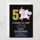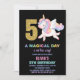 Convites 5 Rainbow Unicorn Aniversário Invoca Preto