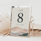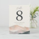 Add beauty and clarity to your reception tables with this 5x7" table number card from the Sierra Dusk wedding collection by Redwood & Vine Design Co. The design features bold modern numbering, your custom names and date, and a soft watercolor mountain scene in blush, peach, and slate hues. Available printed or as a digital download, this larger format table number is ideal for elegant outdoor celebrations, desert weddings, and mountain venues. Part of the Sierra Dusk suite.