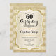60º Convite de aniversário. Design elegante em ouro e branco. Apresenta fitas de ouro com brilho sutil, fonte de script na moda e confetti. Perfeito para uma comemoração de glam.