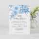 Personalize o ano de aniversário (ou exclua informações no campo modelo). Suíte de convites de aniversário com produtos correspondentes, apresenta uma cor pintada à mão, azul empoeirado e branco, estilo chintz clássico, floral sobre um fundo branco de aspecto damasco. Texto de fonte com letras belamente manuscritas, com traços e todo o texto em azul marinho (mensagem a nós, faremos qualquer texto de título que você precisar nesta fonte). Copyright, Audrey Jeanne Roberts.
