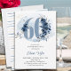 60º convite de aniversário com o número 60 decorado com rosa-buds, florais e folhagem em tons de azul litorâneo e areia. Design sutil feminino e elegante com arranjos florais de aquarela, decapantes de tinta e pinceladas. Perfeito para comemoração de 60 anos com vibe costeira, casa de praia ou lago ou local de entrada de água, por exemplo.