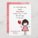 Garota fixe com um balão vermelho, cabelo, colar pérolas, vestido de gingham e tênis em fundo branco para uma festa de aniversário 60ª. O reverso é um padrão de gingham vermelho e branco. O texto pode ser editado.