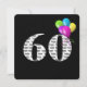 Texto preto e branco em negrito sobre fundo preto com balões coloridos para o 60º convite à festa de aniversário.