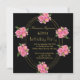 60ª Festa de aniversário, Dourada Flores Pretas Rosa, Convite