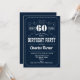 60º Convite de aniversário. Marinho elegante e design retrátil branco com fonte de script. Até 60 anos! Envie-me uma mensagem se precisar de mais personalização.