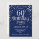 60º Convite de aniversário. Design elegante em azul marinho escuro e prata brilhante fraca. Possui fonte de script na moda e confetti. Envie-me uma mensagem se precisar de idade personalizada.