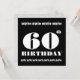 Esta design contemporânea com sua grande e ousada carta é uma maneira divertida de convidar as pessoas para uma celebração do 60º aniversário da SURPRISE. Texto na placa totalmente personalizável - Você também pode alterar as cores do texto ou do plano de fundo para uma aparência diferente. Você pode experimentar diferentes tipos de papel clicando na guia "Opções de Convite" no canto superior direito. Eu recomendo o papel metálico calcinado, que dá ao seu convite de aniversário um martelo festivo e brilho.