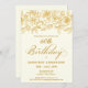 Rosas de ouro de linha aberta elegantes criam a borda superior perfeita. O fundo branco de marfim lhe dá um sofisticado brilho quente e a caligrafia acrescenta um toque luxo. Este convite faz parte da Coleção de Rosas Dourados de Luxe. Contém modelos para papelaria de suite de aniversário, sinais de boas-vindas e decorações de festas.