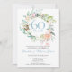 60º ou 75º aniversário de casamento convite com uma delicada cor d'água floral verde-terreno. Personalize com suas informações especiais sobre diamante ou aniversário de platina. O reverso mostra o fazer da sua foto de casamento como um bom guardião para os seus hóspedes. Projetado por Thisnotme©
