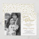 Design elegante em branco com fonte de letra dourada falsa e confetes. Mensagem para mim se precisar de ano personalizado.