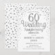 Convite de aniversário de 60 anos de casamento. Design de cartão de convite elegante em branco com fonte de letra prateada falsa e confetes. Perfeito para uma celebração de aniversário de diamante elegante