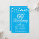 60º Convite de Aniversário com Luzes de Cordas. Fundo Azul. Homens ou Mulheres Aniversário. 13 15 16º 18º 20 21 rua 30 40º 50º 80 de 60º 70 de 100º, qualquer idade.