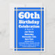 Mande convites para uma comemoração de 60º aniversário com este Convite de 60º Aniversário Azul. Ele pode ser personalizado com suas informações pessoais.